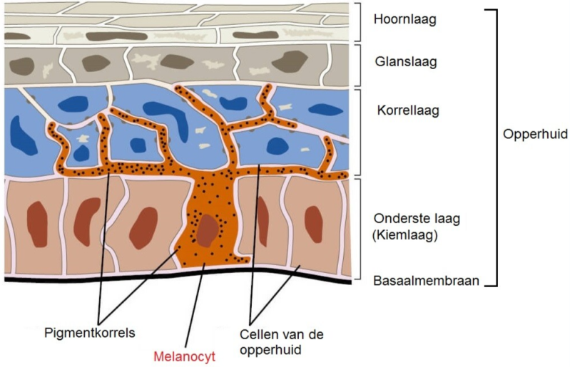 Om te beginnen is het handig om te weten hoe pigment ontstaat. In je opperhuid bevinden zich Melanocyten. Dit zijn de cellen in je huid die pigmentkorrels aanmaken waardoor je een mooi bruin kleurtje krijgt. Je huid maakt namelijk pigment aan als een natuurlijk bescherm mechanisme voor de zon. Dit is ook de reden dat we bruin worden als de in de zon liggen.
